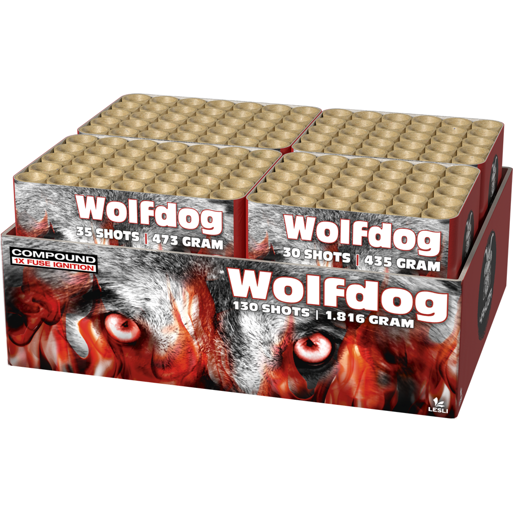 Brillianter Compound mit nicht weniger als 130 Schuss, maximal befüllt mit 2 kg Pulver. Bestehend aus 4 verbundenen Cakes – nur 1x anzünden.